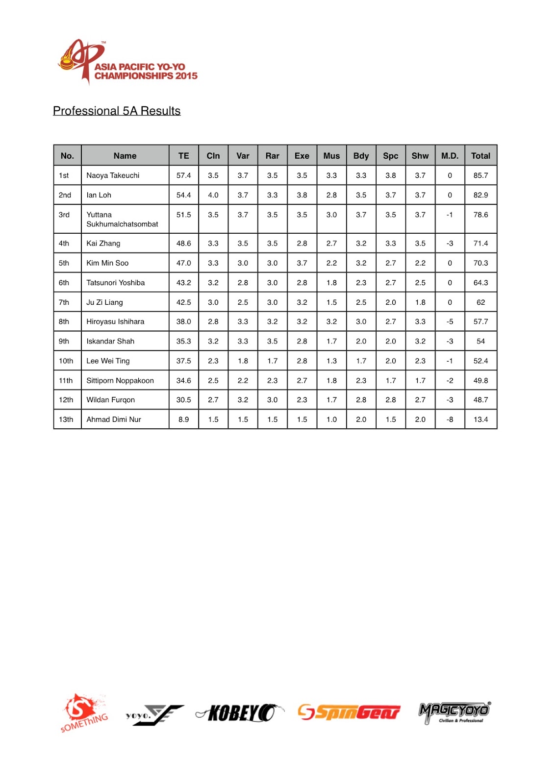 To reiterate the points, every competitor must go on stage and complete the trick list (In Sequence) as fast as possible, and each competitors time will be recorded down.